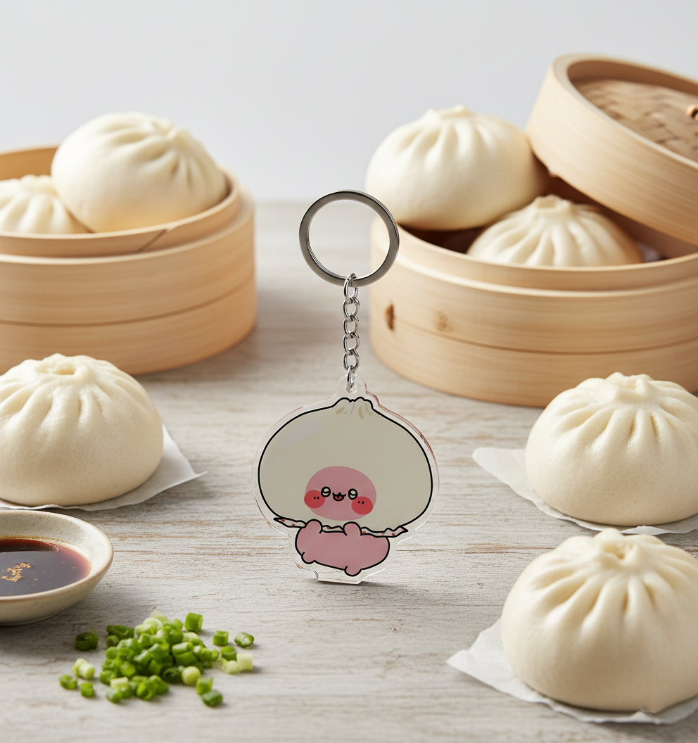 Asamimichan Nikuman Collection acrylic keychain featuring high-quality print, smooth finish, and soft pastel tones inspired by fluffy Japanese nikuman. Cute, durable, and beautifully refined.